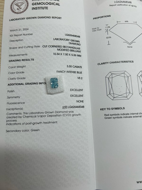3.55ct FANCY INTENSE BLUE Lab trưởng thành Blue Diamond CVD VS2 2EX N IGI.